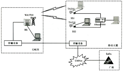 圖2 中山WiMAX試驗(yàn)局VoIP測(cè)試組網(wǎng)圖