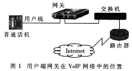 近年來隨著寬帶網(wǎng)絡(luò)和IP技術(shù)的日益發(fā)展,VoIP>(Volee over Internet Protoc01)技術(shù)的應(yīng)用越來越廣泛。網(wǎng)關(guān)是VoIP網(wǎng)絡(luò)中的重要設(shè)備,按照應(yīng)用領(lǐng)域可分為電信級(jí)網(wǎng)關(guān)和用戶端網(wǎng)關(guān)。用戶端網(wǎng)關(guān)設(shè)備主要應(yīng)用于小區(qū)和企業(yè),是連接終端電話和IP網(wǎng)絡(luò)的橋梁,主要功能是進(jìn)行語音編解碼、信令處理、VoIP協(xié)議處理和路由協(xié)議處理等。用戶端網(wǎng)關(guān)設(shè)備在VoIP網(wǎng)絡(luò)中的位置如圖1所示?梢钥闯,網(wǎng)關(guān)處于用戶電話線路部分的末端、IP網(wǎng)絡(luò)部分的起始端。