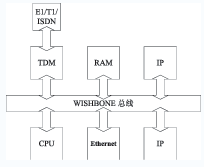TDM控制模塊是VoIP網(wǎng)關系統(tǒng)設計中的重要部分,是連接來自PSTN(Public Switched TelephoneNetwork)串行的TDM數(shù)據(jù)格式和并行的Wishbone數(shù)據(jù)格式的橋梁,實現(xiàn)兩邊數(shù)據(jù)跨時鐘域無丟失的轉(zhuǎn)換。為滿足高速數(shù)據(jù)轉(zhuǎn)換的要求,采用了Wishbone總線,將多個IP核集成為VoIP網(wǎng)關系統(tǒng)。