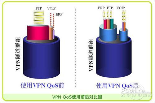 一般情況下VPN線路帶寬所表現(xiàn)出來的時(shí)大時(shí)小、斷斷續(xù)續(xù)、甚至中斷等等不夠用或不穩(wěn)定的情況,在使用VPN QoS以后可得到根本的好轉(zhuǎn),它可以對VPN總體帶寬進(jìn)行大小分配,進(jìn)行優(yōu)先而穩(wěn)定的保證。有了足夠的VPN線路帶寬,才能快速的進(jìn)行VoIP、ERP等應(yīng)用。因此保證VPN整體帶寬是VPN應(yīng)用的基礎(chǔ)。