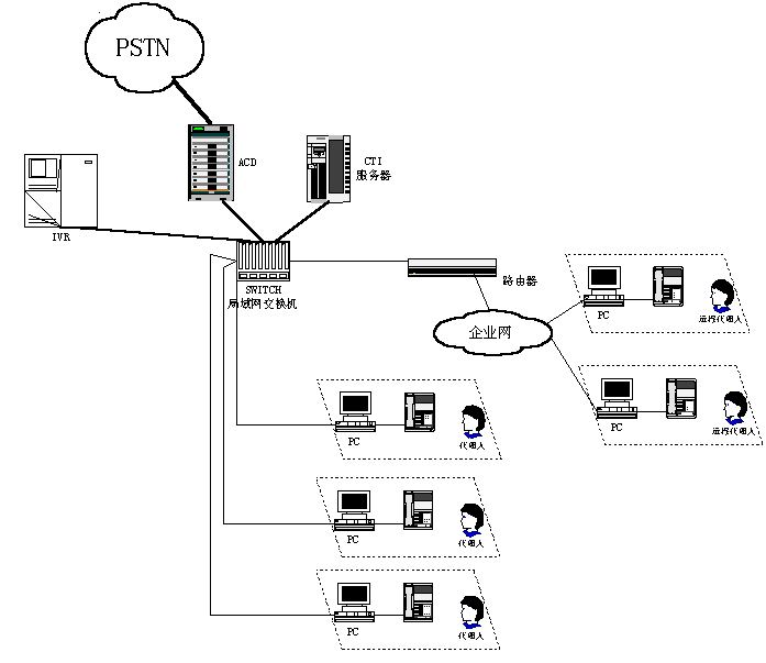 采用IP技術(shù)后,由于因特網(wǎng)無(wú)處不在,因此,IP呼叫中心系統(tǒng)采用全分布結(jié)構(gòu),隨時(shí)隨地可以接入呼叫中心為客戶提供服務(wù),實(shí)現(xiàn)真正意義上的移動(dòng)辦公。它具有一系列優(yōu)點(diǎn):易于面向下一代網(wǎng)絡(luò)過渡升級(jí)、有極強(qiáng)的系統(tǒng)擴(kuò)充能力、成本低、移動(dòng)辦公等。