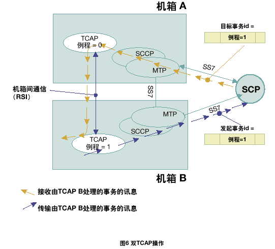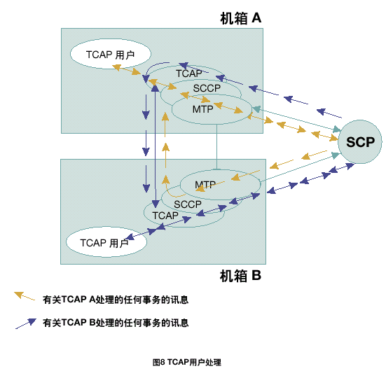 每個TCAP將所有接收的信息傳遞到同機箱中的TCAP用戶任務(wù)中。根據(jù)每一個TCAP中不同的應(yīng)用層或用戶,將TCAP層的本地應(yīng)用程序發(fā)送的傳送會話和組件原語傳遞給正確的TCAP。在雙系統(tǒng)環(huán)境中,接收訊息可以在任何MTP和SCCP層上共享;因此,一個TCAP層接收由其它TCAP處理的應(yīng)用在激活事務(wù)上的TCAP訊息是可能的。