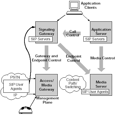 許多語音服務(wù)都是由媒體服務(wù)器提供的。例如,一個(gè)客戶給某個(gè)電子商務(wù)網(wǎng)站打電話會(huì)被接到一個(gè)自動(dòng)語音應(yīng)答(IVR)上或者自動(dòng)總機(jī)上。這些應(yīng)用使用了語音,語音識(shí)別和音頻等功能,都是運(yùn)行在媒體服務(wù)器上的。在下一代網(wǎng)絡(luò)的實(shí)現(xiàn)中,媒體服務(wù)器就象是另一個(gè)電話(或者說,一個(gè)SIP的終端)。因此,他們可以享受和用戶一樣的SIP的優(yōu)點(diǎn)。