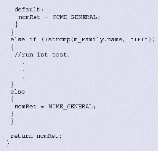 。。當(dāng)系統(tǒng)檢測(cè)到一個(gè)外圍設(shè)備板卡時(shí),建議您在該設(shè)備上執(zhí)行POST以保證硬件功能良好。系統(tǒng)版提供了POST工具,可以基于硬件類型和它屬于的產(chǎn)品系列被單獨(dú)執(zhí)行。圖6例證了這個(gè)功能是如何完成的。代碼snippet是系統(tǒng)版應(yīng)用實(shí)例pfmanager的一部分。