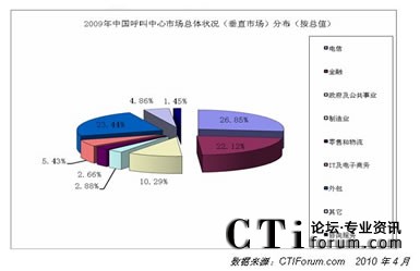 圖1.9 2009年中國呼叫中心市場總體狀況(垂直市場)分布(按總值)